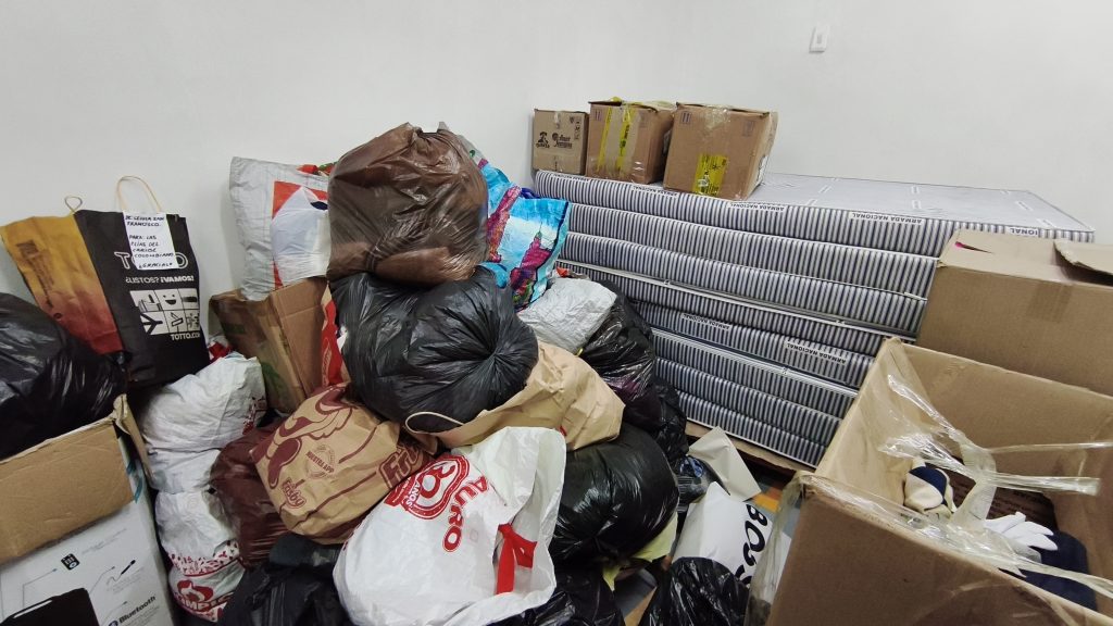 También son necesarios productos de aseo e higiene personal como jabón, shampoo, cepillos y crema dental, toallas higiénicas, pañales, papel higiénico y toallitas húmedas. Adicionalmente, se reciben colchonetas, mantas, ropa en buen estado, calzado, kits escolares, juguetes y utensilios básicos para el hogar.